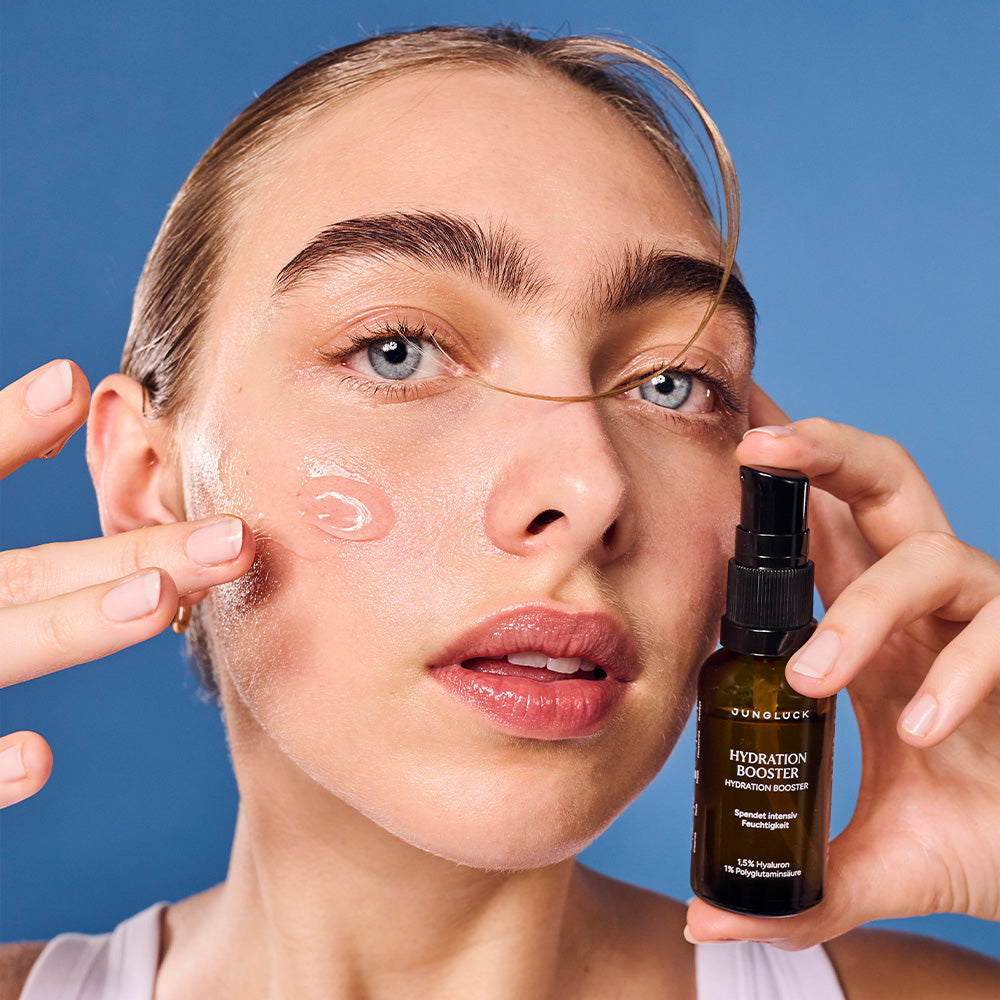 If you have several active products in your routine, we recommend the following application: First apply your serum e.g., Vitamin C serum) and allow it to absorb. Then gently massage 2-3 pumps Hydration Booster into your facial skin so that your previous skincare products can be optimally absorbed by the skin.
